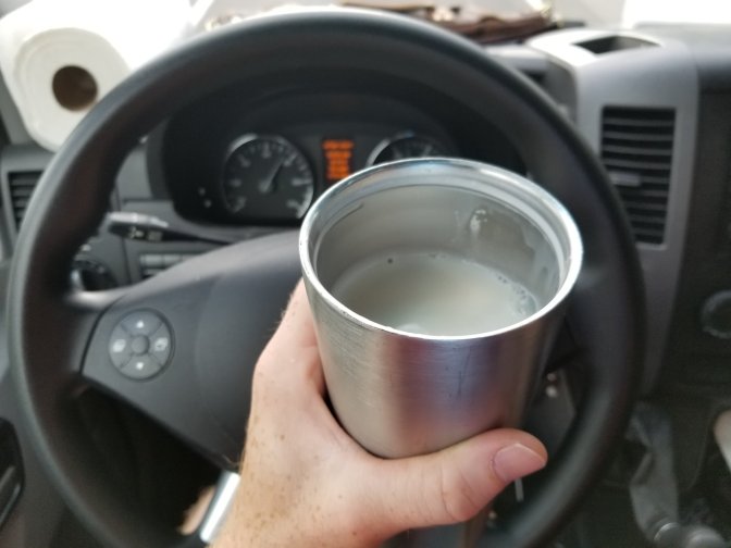 A funny moment and a first, we stopped by Starbucks in Conway, AR (which is a mandatory stop for any multi state trips), and Jaime went in to get drinks while I watched Darwin struggle in his cat leash- yes we do have one, and he hates it… go figure. We get back on the road, and I hesitantly go for a quick slurp of what I was expecting to be hot coffee, and the singe never came. In fact the coffee tastes extremely milky. In fact what I thought was coffee is really just a big thermos of 2% milk. Jaime swears this wasn’t what she ordered so we are going to assume the barista literally thought “just milk” when she responded after he asked if she wanted cream with the coffee.