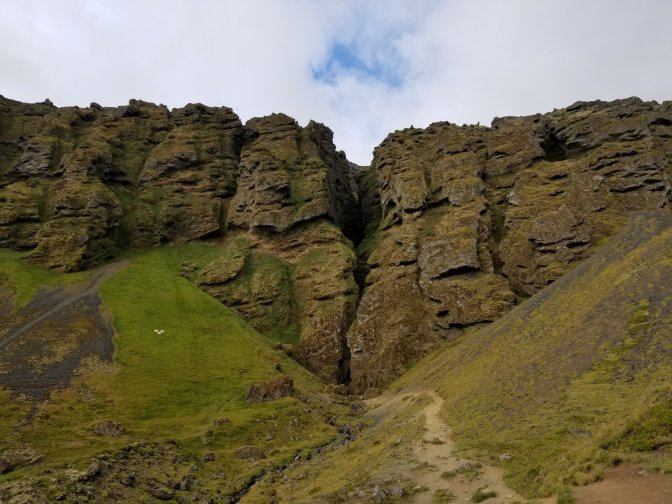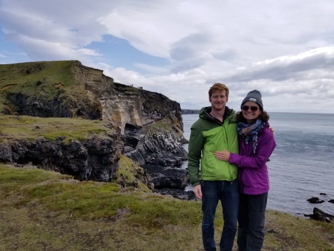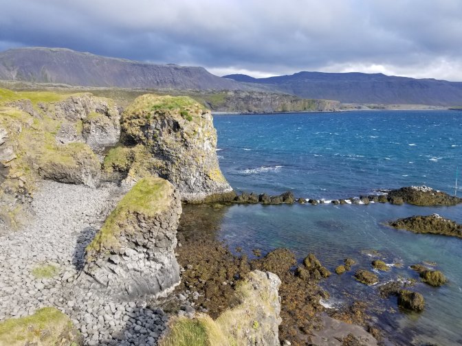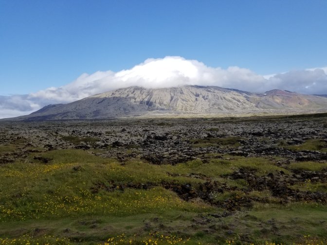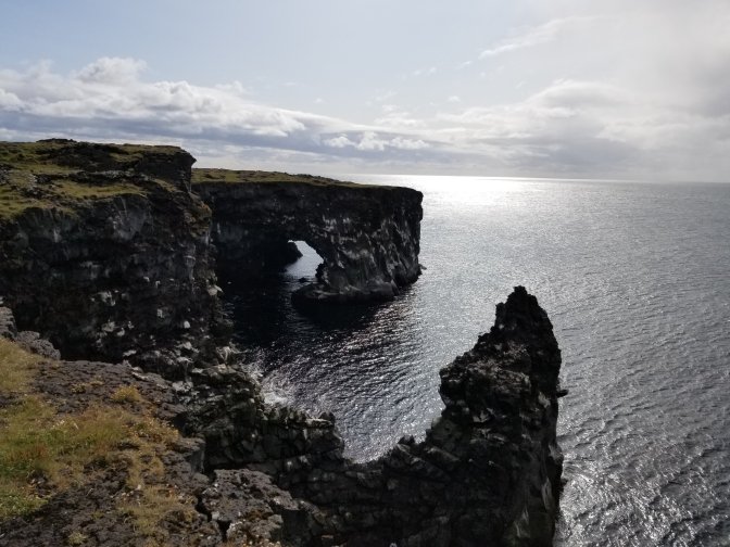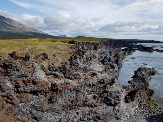 We headed to the Snaefellsnes National Park which I highly recommend. It was awesome. We saw Mt. Snaefellsjokull which is glacier-capped. There were also multiple calderas to look at along with really interesting rock features including basalt and sandstone. They even had a bird nesting site (mainly seagulls) on the side of the cliff.