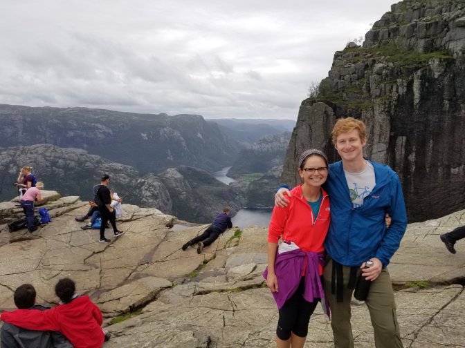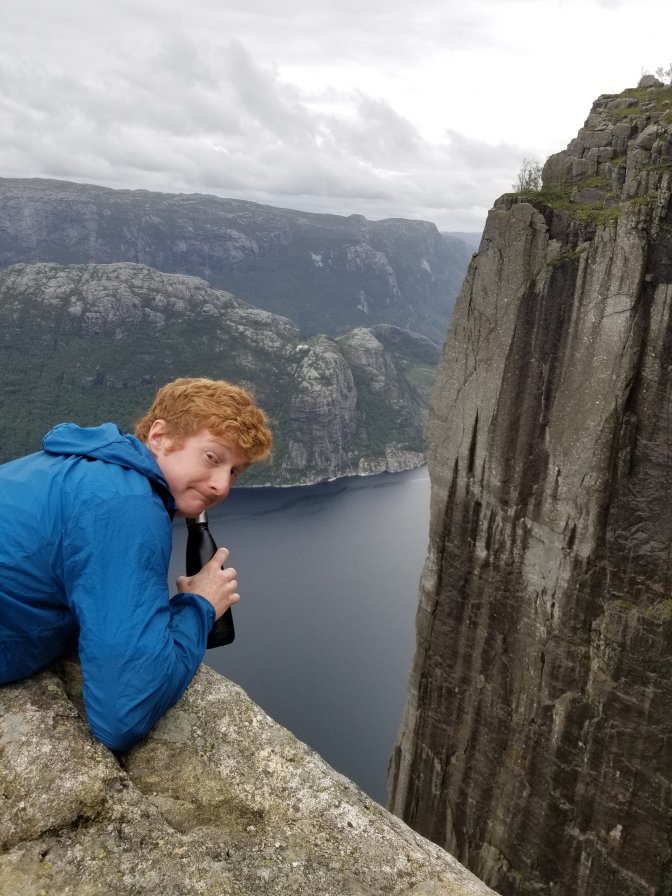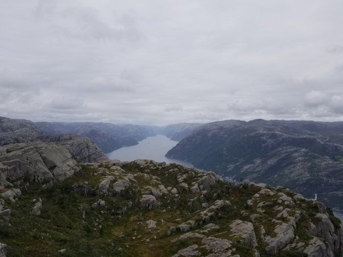 Y’all…..Y’ALL, y’all. This post will be shorter than the last, but I felt it necessary to write. We left Kristiansand and took the train north to Stavanger the spend the night before venturing out to Priekestolen, the iconic Pedestal Rock in Norway. We ventured out on the ferry toward Tau where we took a bus to the trailhead for the Prikestolen hike.Once we got to the trailhead, we embarked on our journey. We had our packs and made the roughly 1000+ ft elevation gain to the top. Holy wow, there were so many people. It felt like Disney World as people waited in line for their picture at the cliff’s edge.