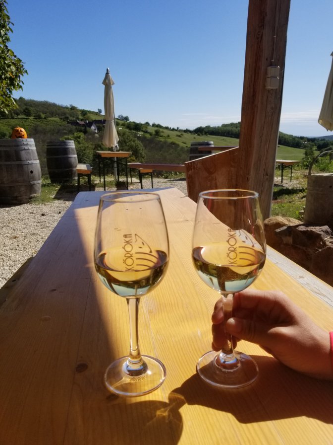 The next morning, we woke up to sunshine, and we decided to do a day tour of the Kali Basin by bike. We rode though various small villages and vineyards that riddled the area. We stopped at a couple of the wineries to rest our legs and of course check out some wine. Kőróka winery was our favorite. I don’t consider myself a wine connoisseur by any means, but we greatly enjoyed it. The vibe was also super relaxed, and we just hung out talking to the folks working there about their vineyard. Turns out they don’t irrigate their grapes and just rely on rain alone. Also, they said on 5 hectares of land, they produce 10,000 bottles a year!! We were shocked.
