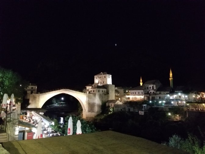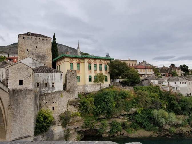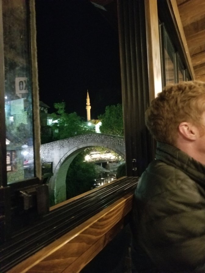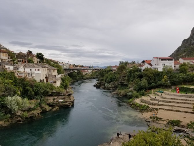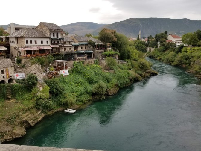 Fastforwarding to the present. We’ve just survived the pounding thunderstorm with lightning filling the sky, three border control crossings for a small 12 mile strip of land which intersects Croatia along the Adriatic Sea. We’re winding through the mountains in the valleys of massive vineyards and other agricultural fields, and then we enter a small town called Mostar.We left the bus station with our packs on our backs and walked toward our apartment. I remember thinking it was so starkly different from seaside Croatia just flooded with tourists and any amenity you could want at your fingertips. This…this was different. This had a story behind it that was almost palpable in the air.