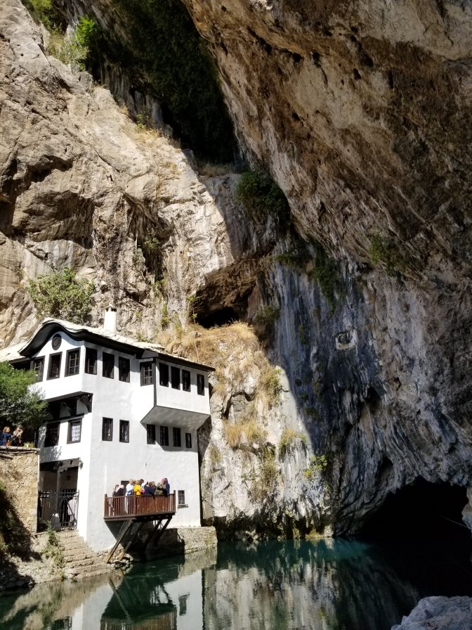 The next day we decided to take a bus to a smaller village called Blagaj. Here we visited a monastery complex referred to as the Tekija which dates back to at least the early 17th century. It was built into the side of a large cliff face, along the side of the Buna River. This was a dervish house used for worship and also contained a domed mosque.