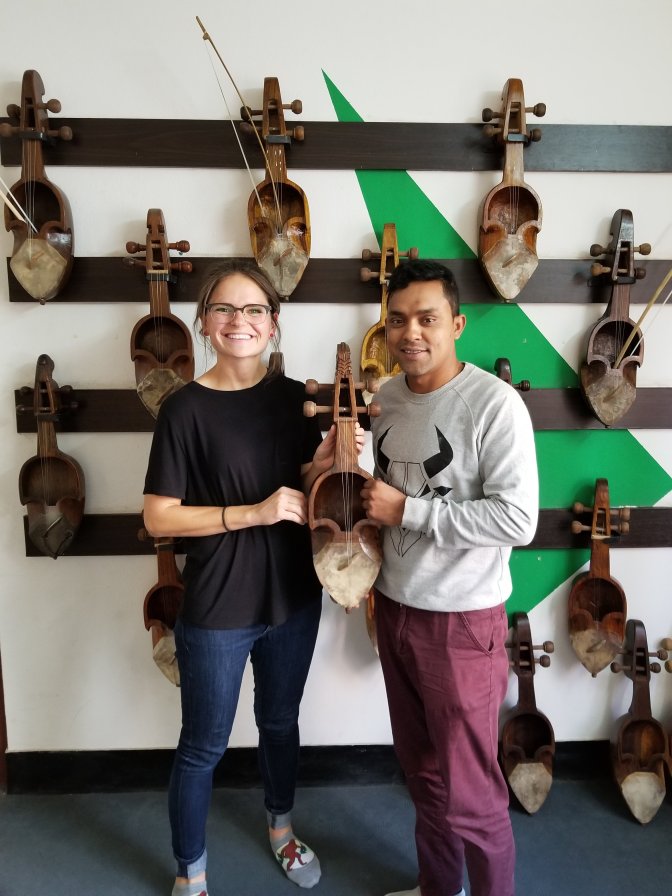 We met Kiran who played for Kutumba, and he heads a center called Project Sarangi. Here all the instruments are handmade, and he offers lessons to help preserve traditional Nepalese music culture. After Kiran helped me find my own sarangi, Morgan and I hung out and talked with Kiran and his fiancée for hours. They’re awesome folks, and we wish them all the best! (Edit: we got to attend the Jamarko Jatra Festival organized by Kiran and his team which allowed musicians from different villages of Nepal to showcase regional traditional music and instruments. It was a great event, and I fully advise folks to go next year).