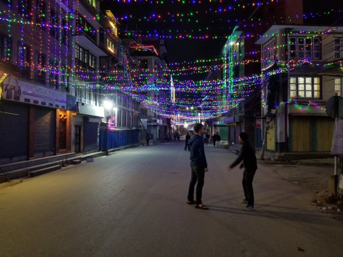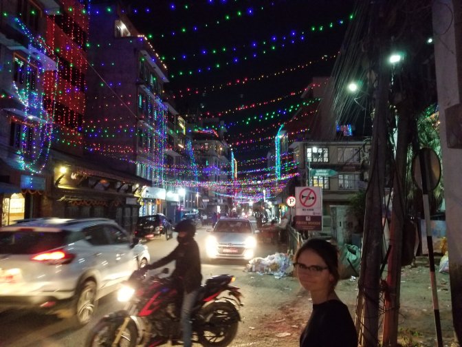The first celebration we observed with them was the second day which recognizes dogs as protectors of the household. We were able to celebrate Miss Enyo with treats, a garland made of marigolds, and of course, extra pets!! After we celebrated, we walked around Patan to look at all the lights with Sam Jam (Sam you have a nickname, sorry). Haha. The streets made you feel like it was Christmas but with lights adorning beautiful buildings and temples instead of a houses. Nepalese people mean business with the decorations, and we are big fans.