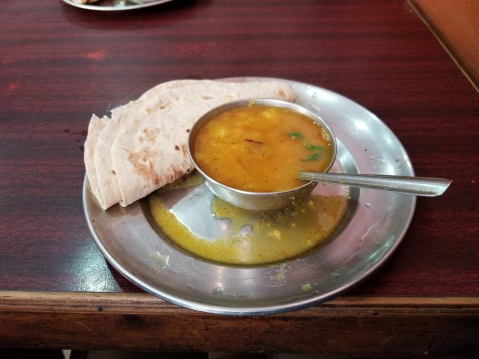 1) We got to try roti and curry (Nepalese breakfast food) with Sam, and he and his mom showed us around the school where she works. We got to see the kids recite their morning prayers, and we got to tour the classrooms.